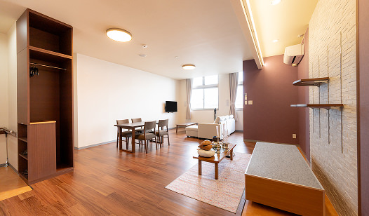 青森市西部に位置し新青森駅から車で10分。大駐車場完備。明るい館内と広々としたお部屋でお過ごし頂けます。
